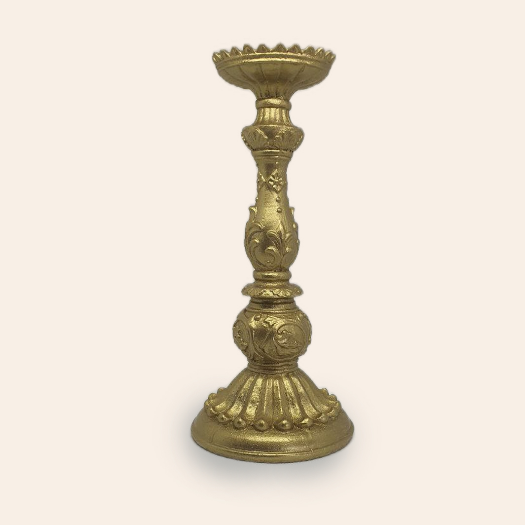 Candeliere in legno dorato, misure: ø10cm, H30cm