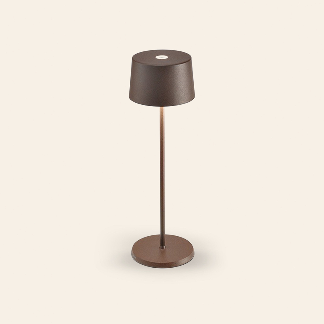 Lampada a batteria Zafferano in corten, misure: Ø11cm H35,5cm