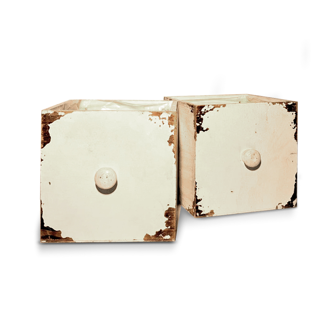 Set di 2 cassetti in legno sbiancato, misure: 18×18 H18cm