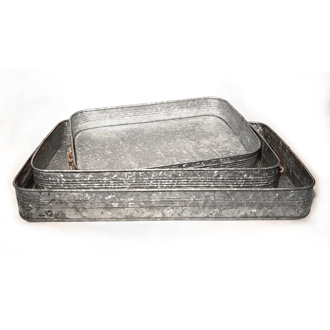 Set di 3 vassoi in zinco, misure: 60x35cm – 50x30cm – 40x25cm