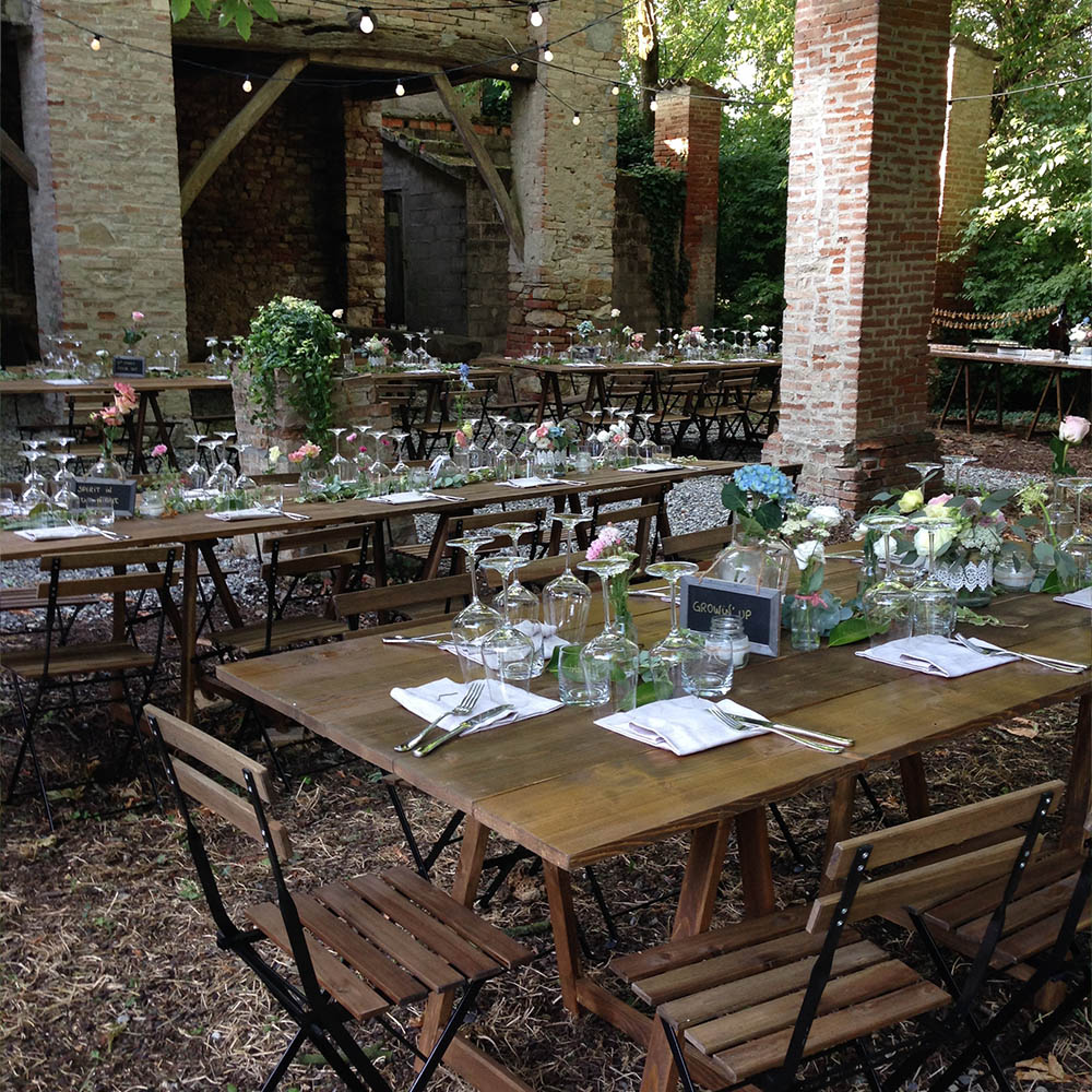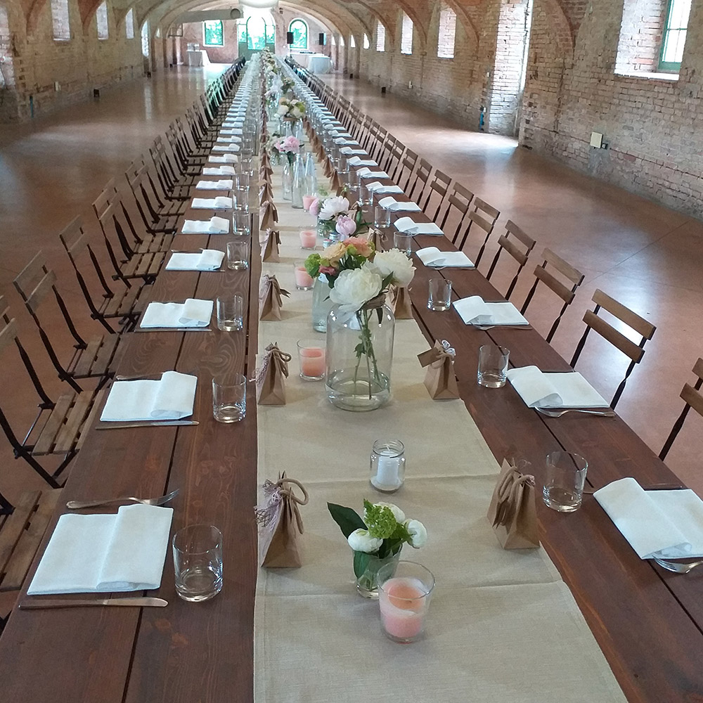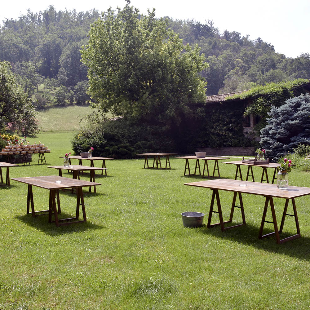 Tavolo rustico in legno con cavalletti, misure: 150X75cm