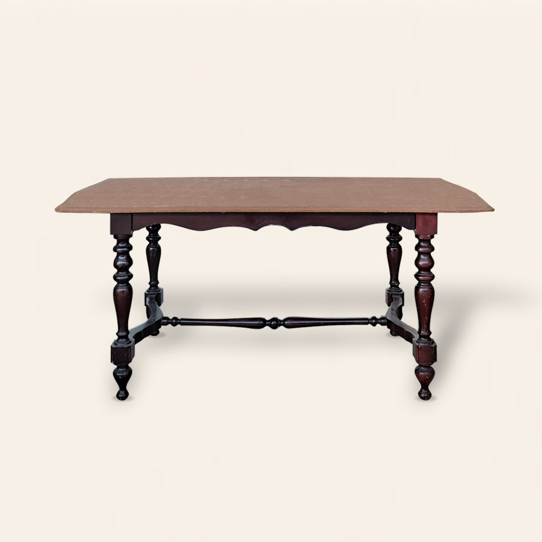 Tavolo vintage anni 60 con gambe in legno e piano in resina, misure: 150x75cm