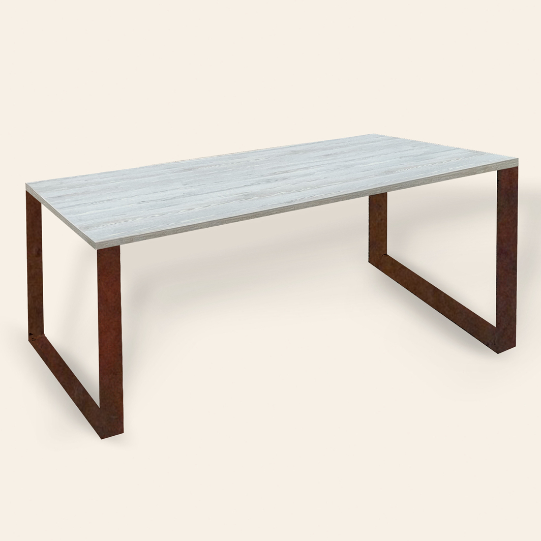Tavolo componibile con gambe corten e piano legno sbiancato