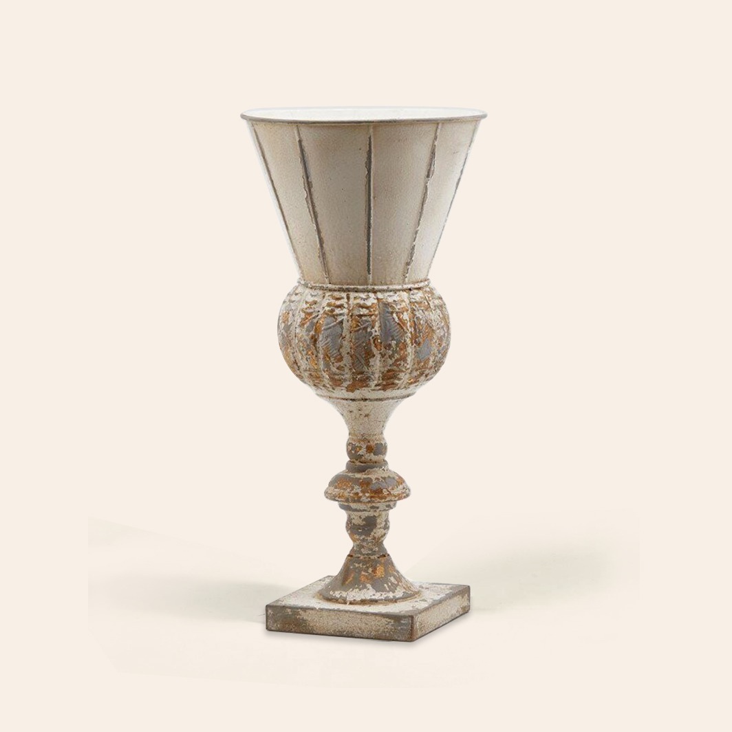 Vaso coppa in ferro battuto sbiancato, misure: ø28 h59